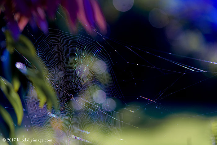 About a year and a half ago, on Mauna Kea, I learned that spiderwebbing can give a prism effect. This morning, I spotted a web on the lychee and the sun was just in the right position.