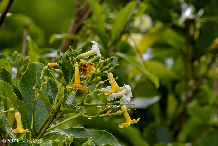 Pua kenikeni in the rain. This is with the 500, from the back lanai. A long lens is handy when there's rain.