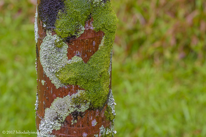 Raining. Here's the oldest betel palm's trunk, with occupants.