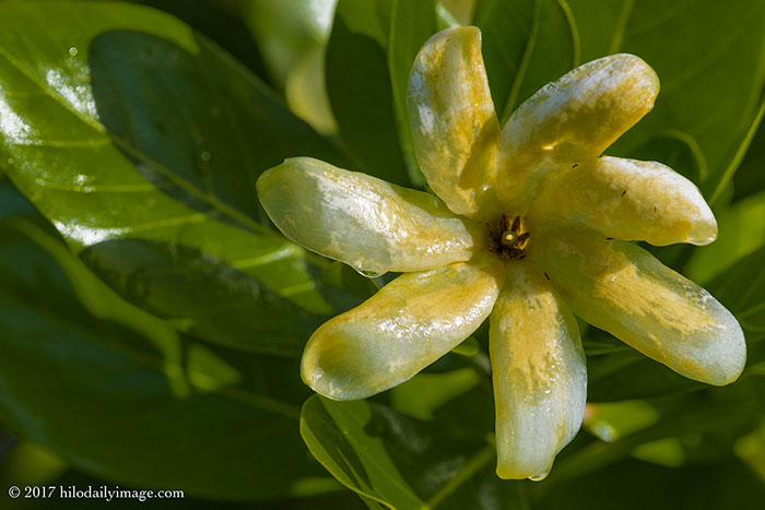 I continue to admire Tahitian gardenias on their way out. The translucency is beautiful. This one isn't entirely gone, but I shot it because of the glowing center. Lookin' atcha!