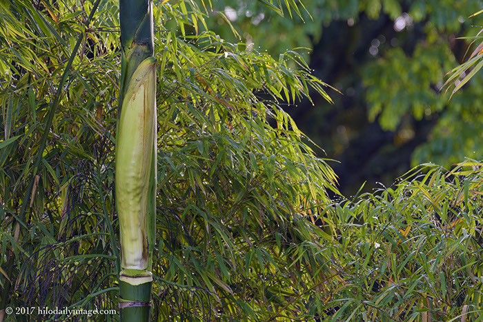 I had the 500 up on Mauna Kea last week and hadn't put it away. So here's the betel palm and bamboo, all wet and in morning light, seen through a long lens.