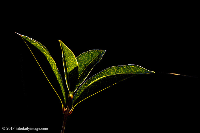 Sunny morning. The Osmanthus fragrans was nicely back-lit, with spider webbing trailing off to the right.