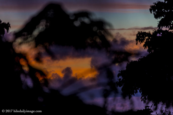 The shower tree's grown into the gap between the monkeypods, which generally I find annoying, because the gap give me my only view out to the ocean. But today, instead of fussing about it, I used it to frame Yet Another Hilo Sunrise. Worked pretty well.