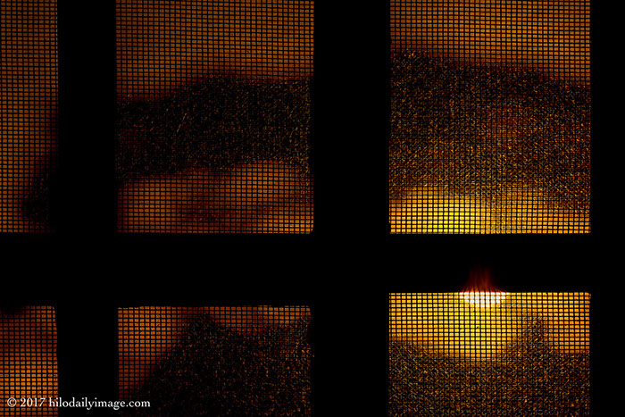 That rising sun was so hot it set a window mullion on fire. Well, at least it looked that way. And somebody needs to clean that screen, too.