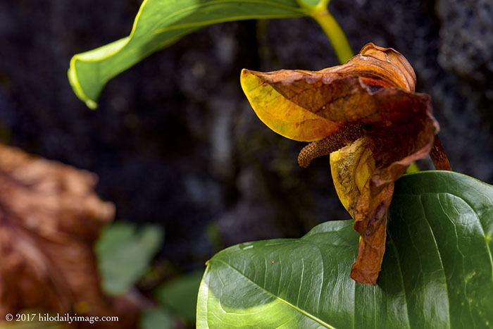 Anthurium on its way out. I liked the colors and shape.