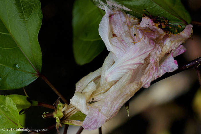 White Hibiscus #6. One more to go. I liked the wetness and also the colors -- there's still the brilliant magenta, but also the muted yellows and roses.