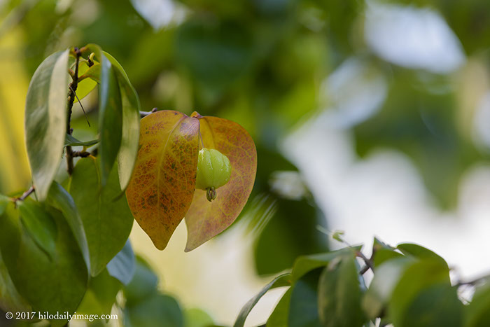 The Surinam cherry is making a lot of fruit right now. I liked the contrast between the green cherry and the leaves enclosing it.