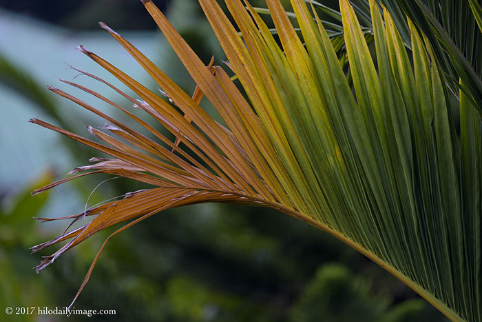 More muted colors. I've always liked the way palm fronds brown from the tips in. This is the dwarf betel palm.