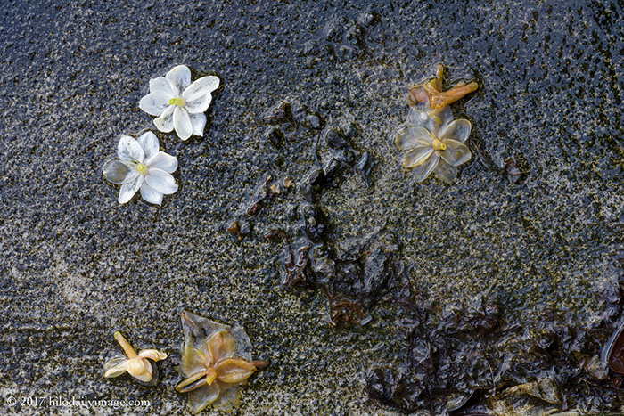 Wet morning, but it's not raining. Here are pikake in various stages of decomposition.