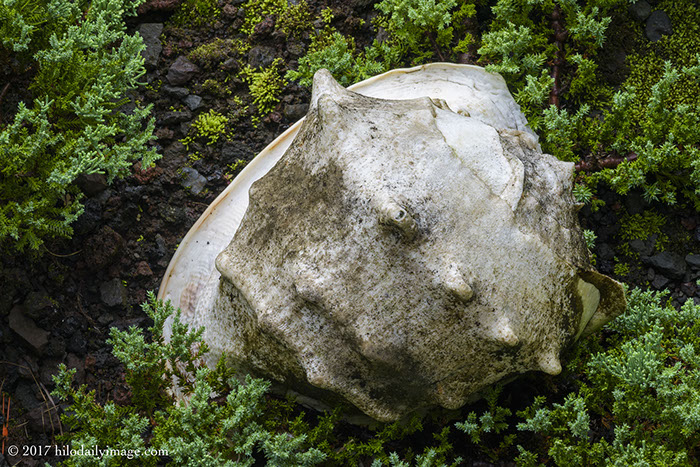 A combination never found outside of my garden: Malaita shell, creeping juniper, and crushed lava.