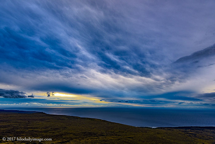 Sunrise at Hilina Pali this Winter Solstice displayed itself in the blues, not the yellows, oranges, and reds. I've most often used a short telephoto for the sunrise, but today called for the superwide.