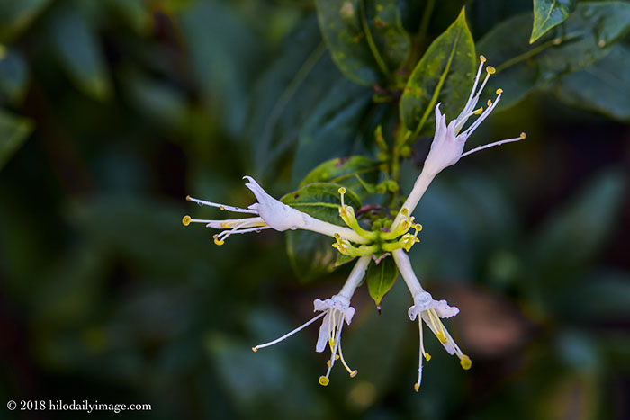 This week I'll be working earlier in the morning than usual. Lucky for me, this honeysuckle blossom stood out nicely even in low light.