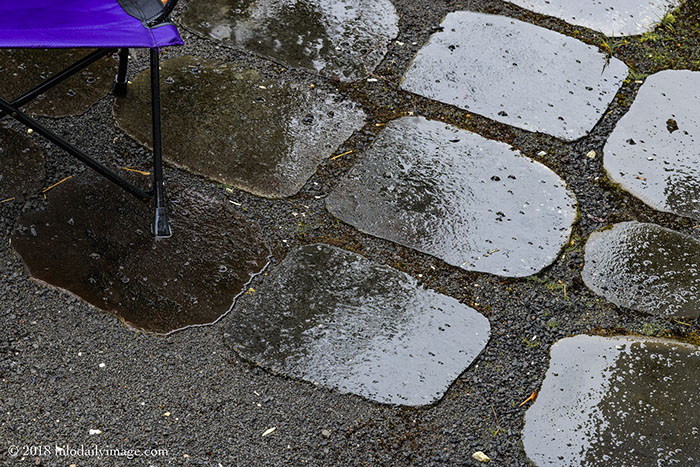 Chair left out in the rain. Plus stones, plus rain. Not a very nice morning up here in Pi'ihonua.