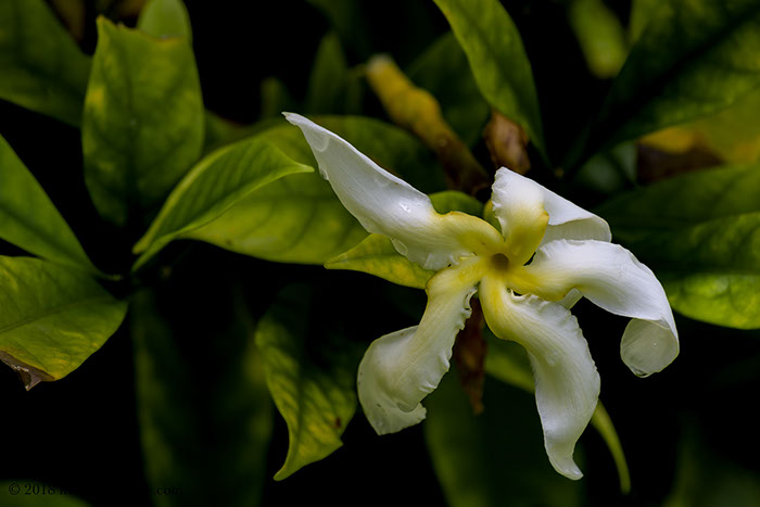 La fleur qui marche. No, not Léger's. Just a Tahitian gardenia along the back border.