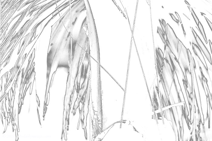 I was in a b/w mood again this morning. This is the crown of a palm, shot with a long lens and severely cropped. I liked the pattern the hanging tendrils were making at the center.