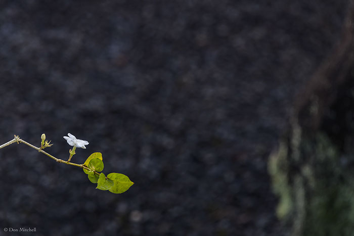 Looking down at a pikake blossom in the Zen garden. Interestingly, when I went out this morning all the shots I found were white flowers against dark backgrounds: a lone gardenia against the bushes, a rose pikake against the Buddha bamboo, the Osmanthus fragrans and finally when I climbed back up onto the front porch, I looked down and saw this, which I liked better than any of the others.