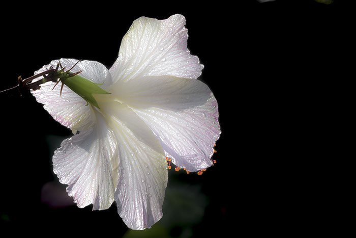 Backlit white hibiscus. Not much else to say about it, beyond that there are more colors in the allegedly white blossom than you'd think.
