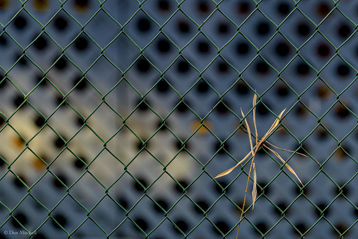 Dried bamboo on the mauka fence, with the Walsh house in the background.