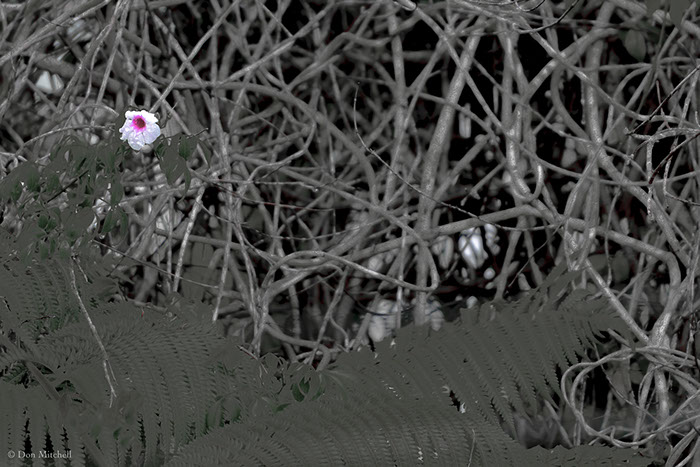 Well, the best answer is because I felt like it. Stefanotis, hapu'u fronds, desaturating colors with abandon. [EDIT: this isn't Stefanotis, it's Pandorea jasminoides, common name "Bower vine"]