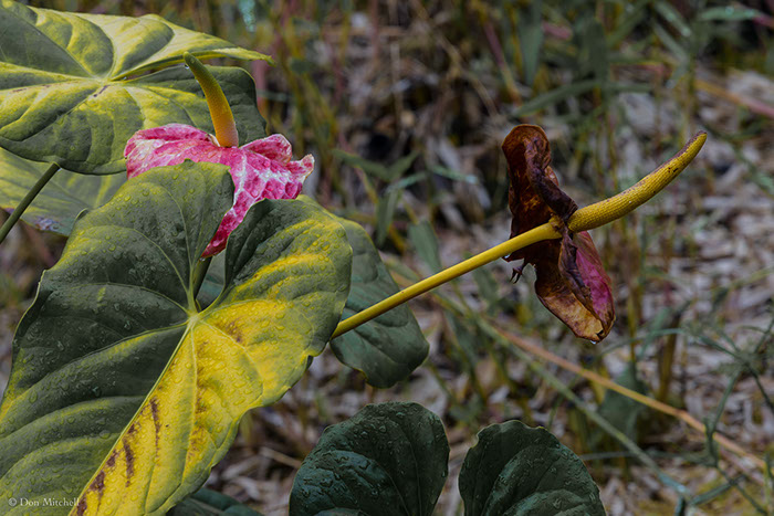 I've been cleaning out my mother's ancient anthurium bed along the mauka border. These are probably 30 or 40 years old and have been left to fend for themselves since well before she died (in 2003).