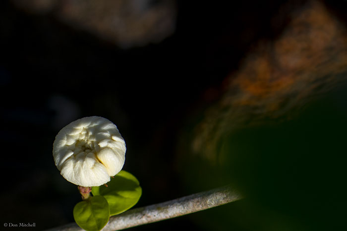 I've been planting tree pikake (a.k.a. rose pikake or Chinese pikake) along the front border. I was shooting the "JB" 'ohi'a but saw this bud and chose it for the HDI.