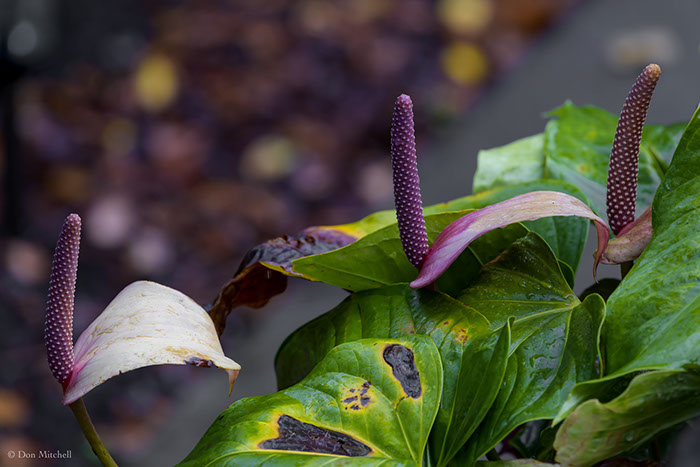 Three anthurium spathes all in the same focal plane. This is unusual.