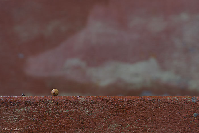 Palm seed on the steps. With a piece of gravel.