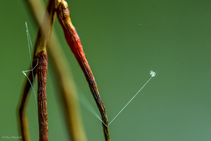 I was photographing an 'ōhi'a's aerial roots when whatever this is (spider related, for sure) caught my eye. The webbing takes off upward, but I couldn't get it in focus.