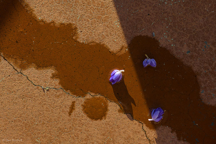 No April fooling here. Just the concrete porch landing, with flowers and water.