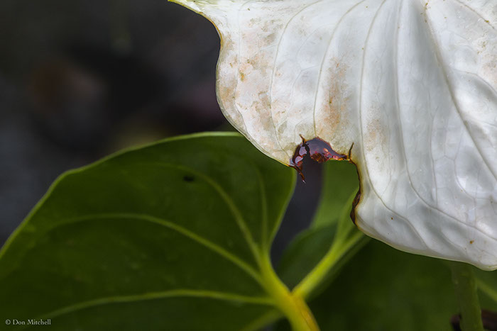 What to do when it's dark and raining heavily? Shoot down into the anthurium bed from the porch, is what.