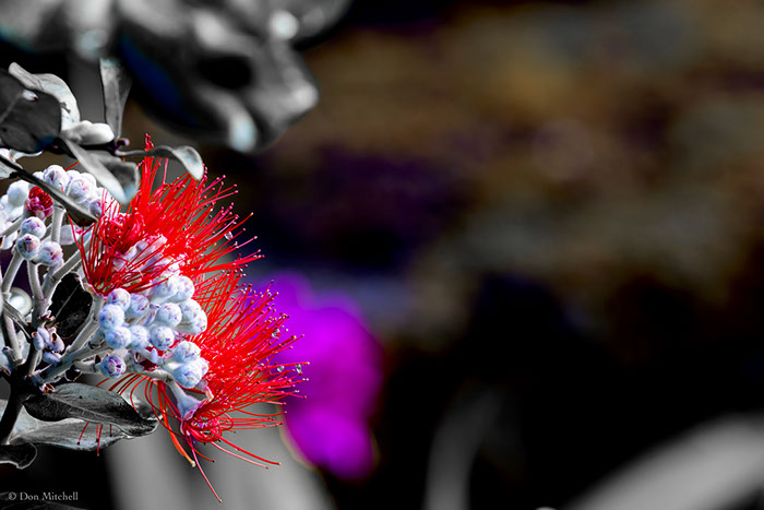 I saw that one of the Becky Cooper 'ōhi'a blossoms was lining up with a Spathoglottis blossom.