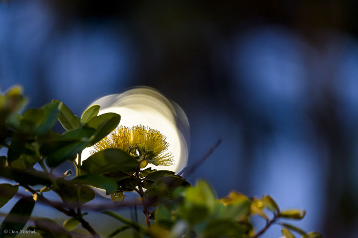 Yesterday I shot the Jane Britton 'Ōhi'a against the rising sun. This morning I saw I could shoot it against the setting moon.
