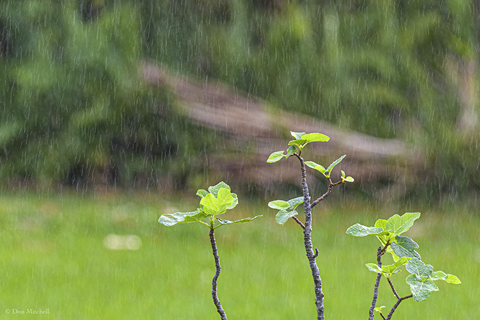 And the long string of sunny mornings ends. Here's the fig, in rain.