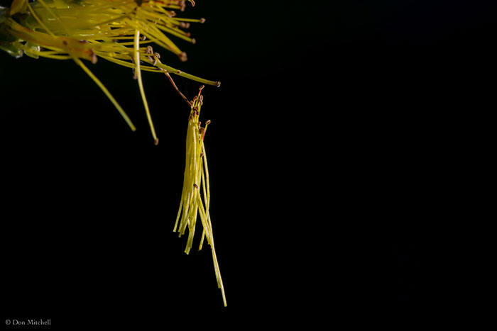 Some strong early light on part of a Jane Britton 'Ōhi'a that's headed for the ground. Just hanging on.