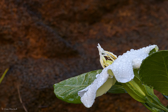 Here's Rachel's gardenia against lava. Yesterday I saw the bud, but I wasn't expecting it to blossom so soon.