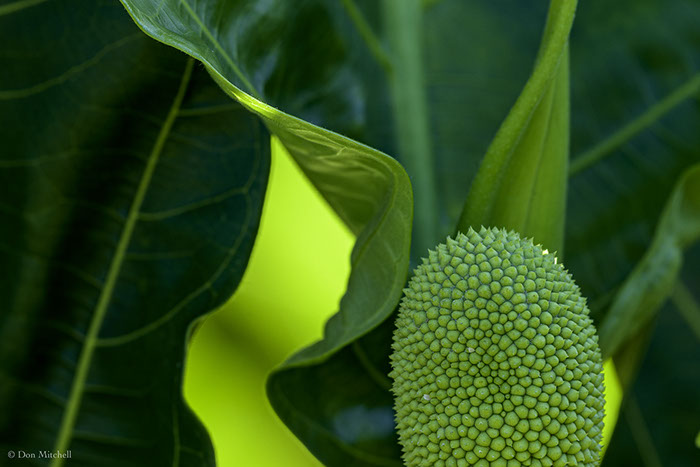The 'ulu (breadfruit) is finally making fruit. There was a false alarm a while ago, but this looks like the real thing.
