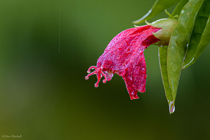 I've made plenty of drooping white hibiscus images. Here's a droopy red one. We're having a lot of rain, from two storms.