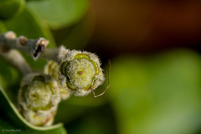 I spotted some new growth on the Becky Cooper 'Ōhi'a -- in a form and color I'm not used to seeing. It's probably because I looked at just the right time.