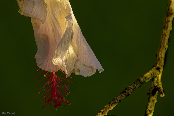 It was a sunny morning, and I was feeling lazy, so I shot this white hibiscus from the porch, with the 500.