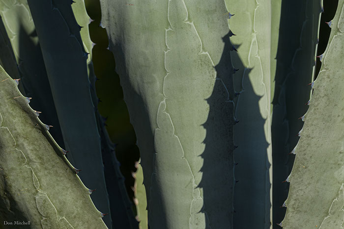 A large something in the Aloe family (?), across the street. The owner sometimes talks about cutting it back or taking it out, but doesn't feel like being assaulted by those thorns. Can't say I blame him.