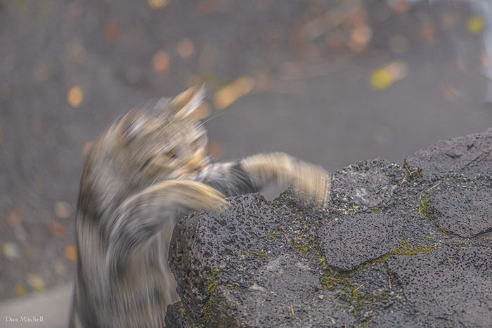 When there's nothing much to shoot, you happen to be focused on the rock wall, and Pippin the cat decides to climb it.