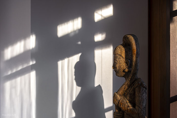 Sunny morning. I was headed outside but saw that Phra Mae Thorani and the window were making interesting shadows.