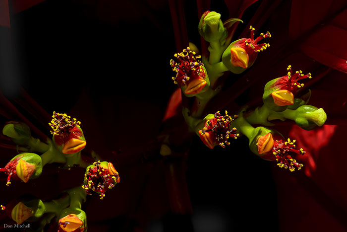 Who knew that, close up, poinsettia blossoms look like head-on reef fish?