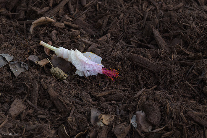 Another crazy day coming up, so once again I shot from the porch. White hibiscus on newly-spread mulch.