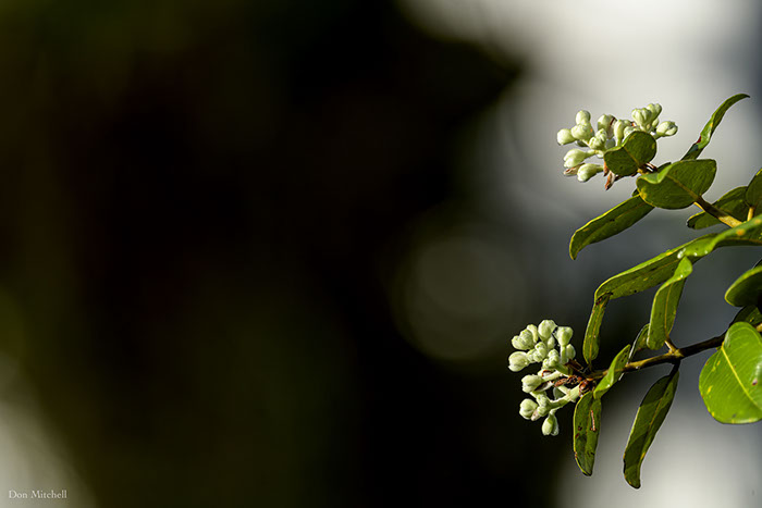 Some early light on the Jane Britton 'Ōhi'a, which is making blossoms now.