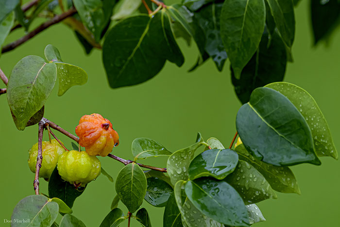 It was raining, so I shot some Surinam cherries with the 500. Sometimes this seems funny to me: the 500 is really a wildlife photographer's lens, but here I am shooting plants with it. Oh well.