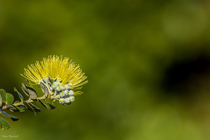The Jane Britton 'Ōhi'a is putting on a show. This isn't the most brilliant blosson, but it was well-positioned for the shot I wanted to make.